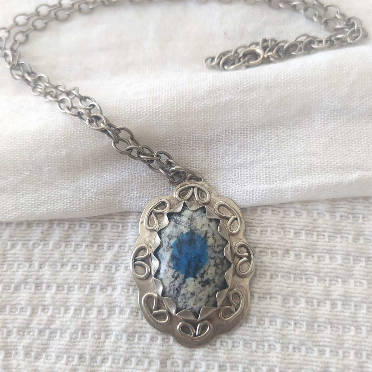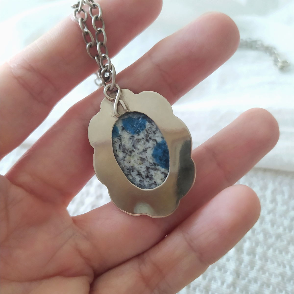 Dije de Jaspe k2 trabajado en alpaca. Viene con cadena de alpaca incluida.