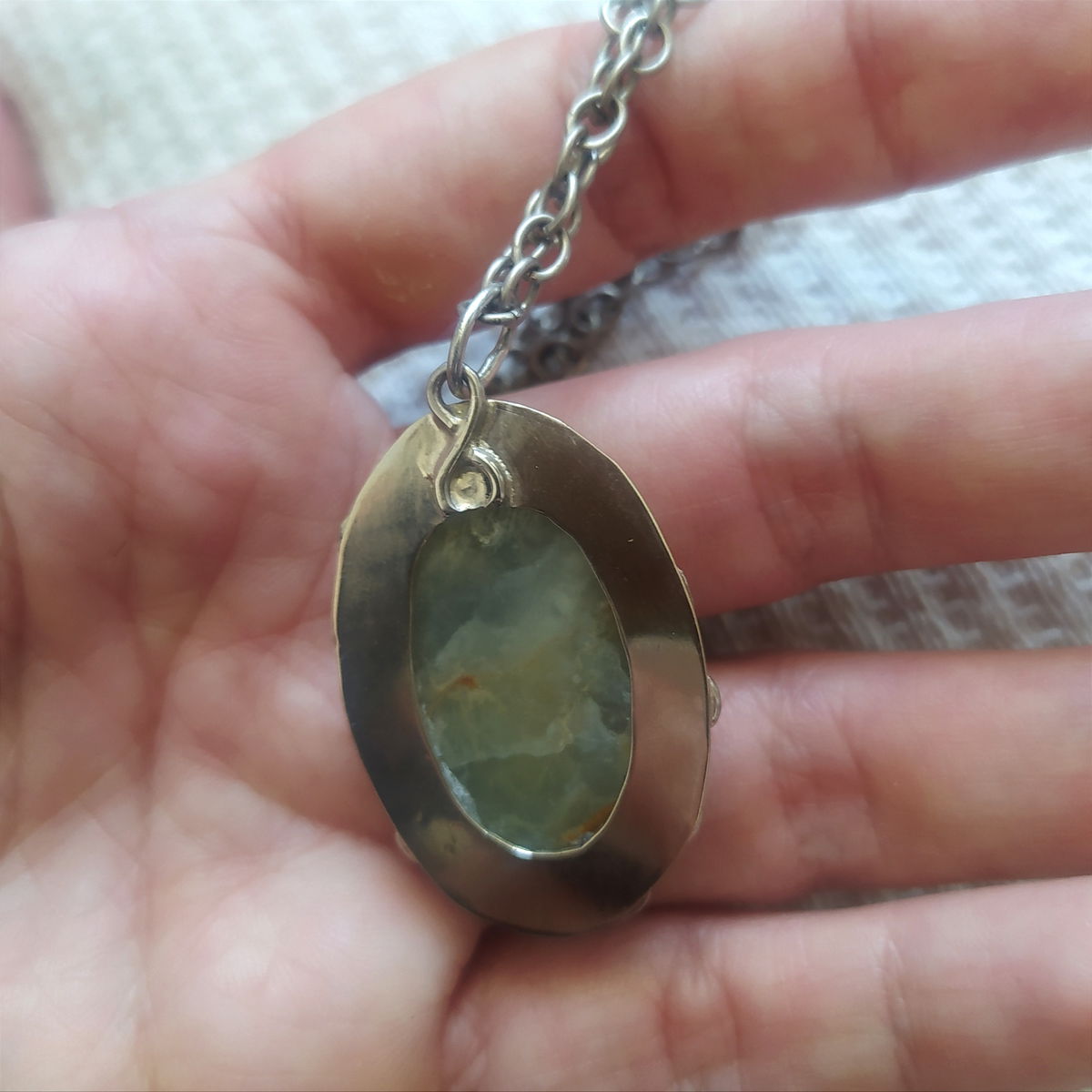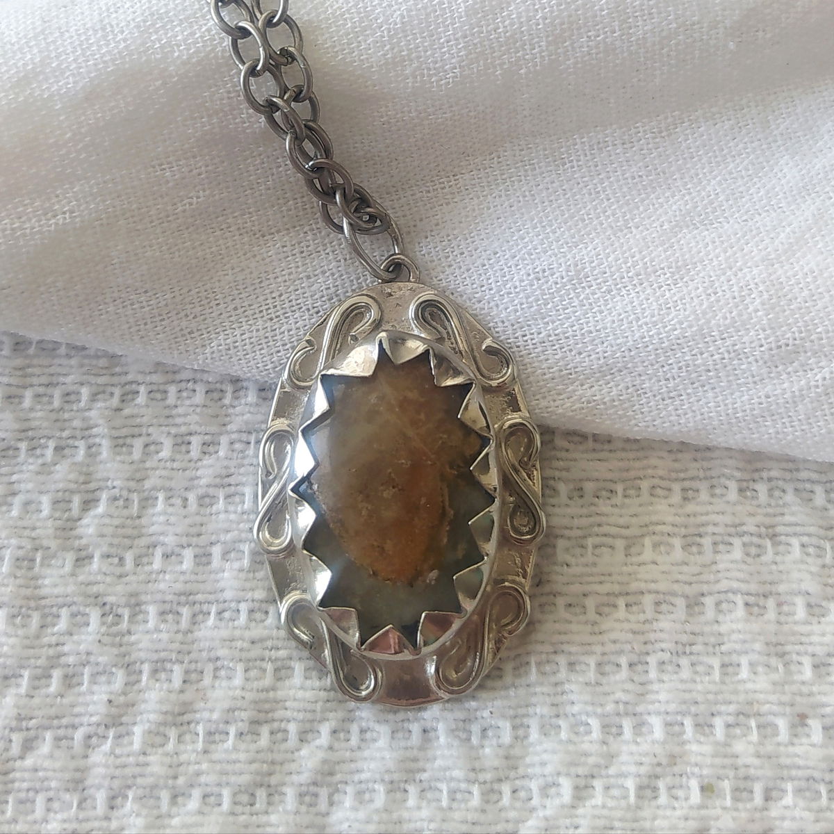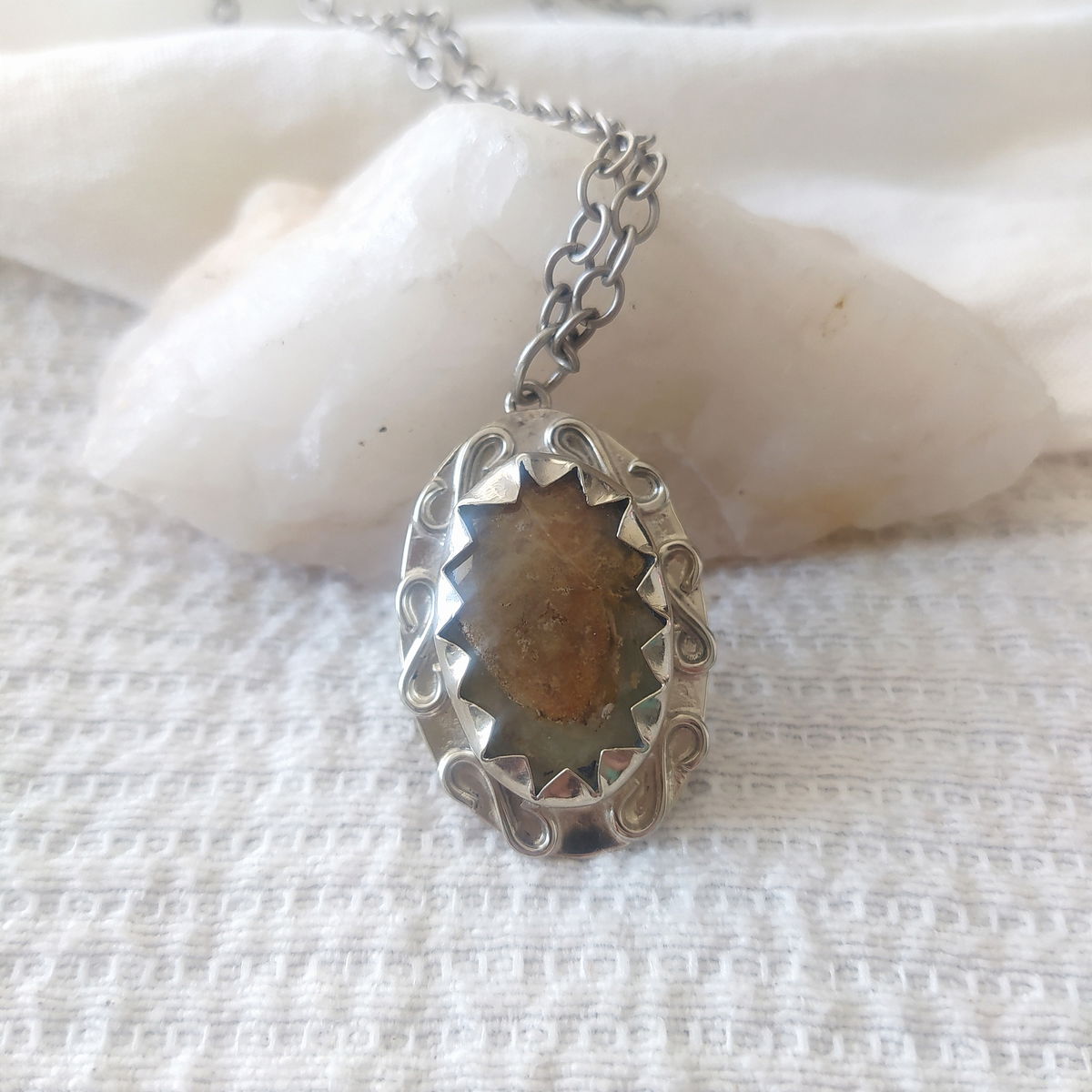 Dije de Onix Jardìn trabajado en alpaca. Viene con cadena de alpaca incluida.