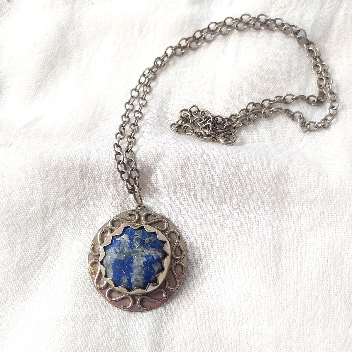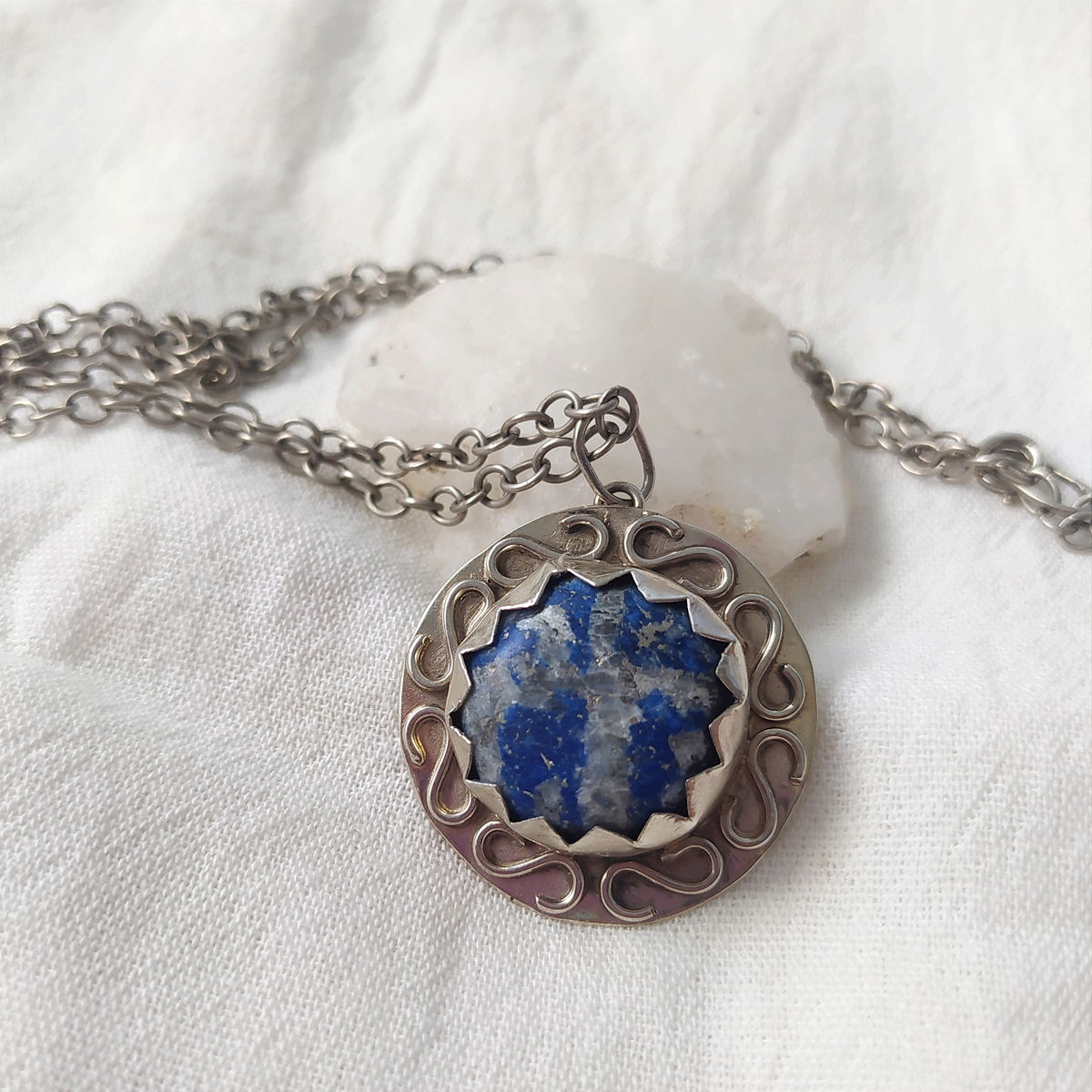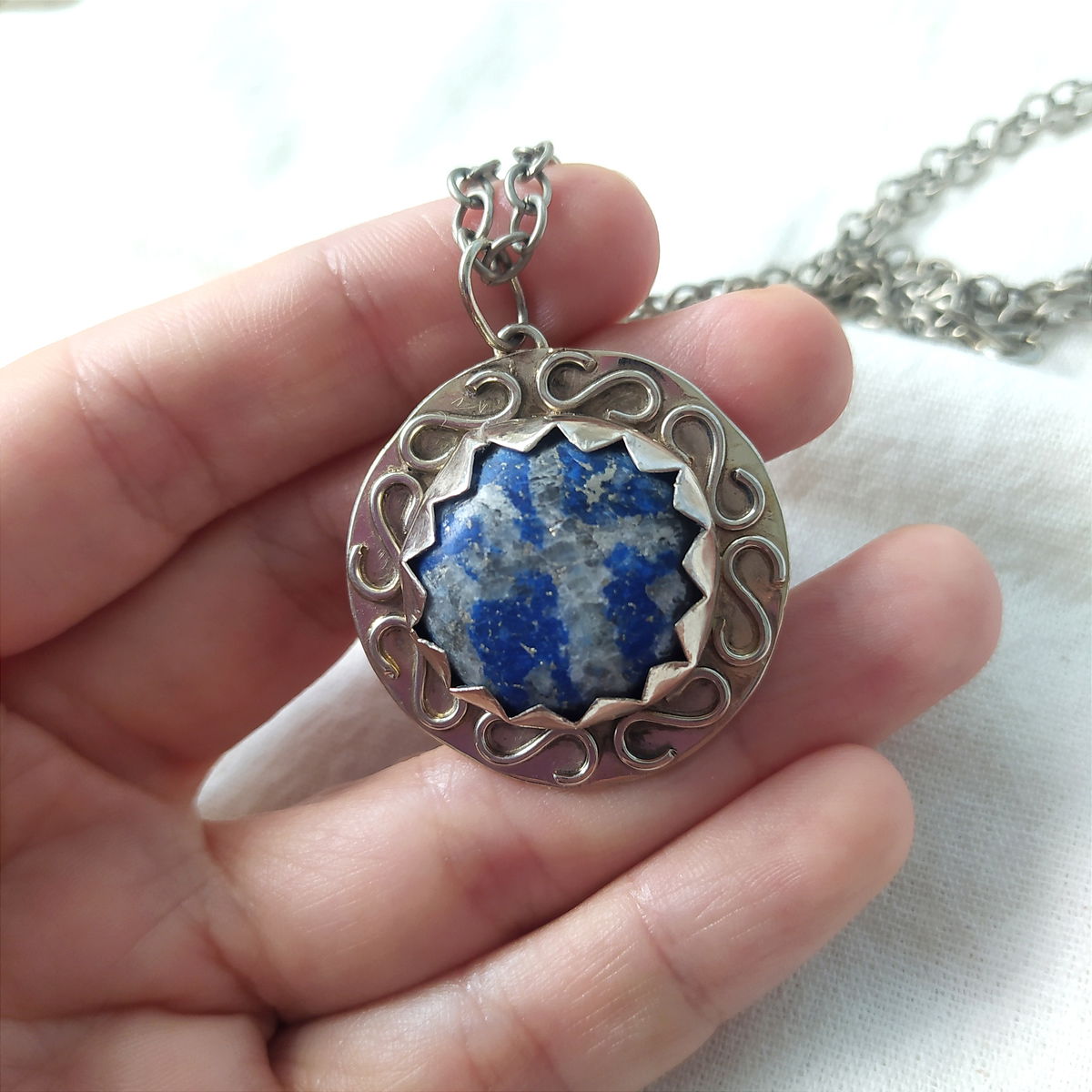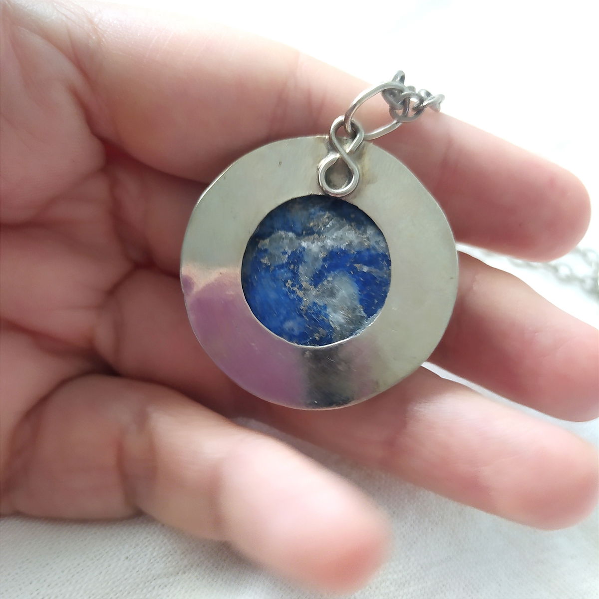 Dije que Lapislázuli trabajado en alpaca. Viene con cadena de alpaca incluida.