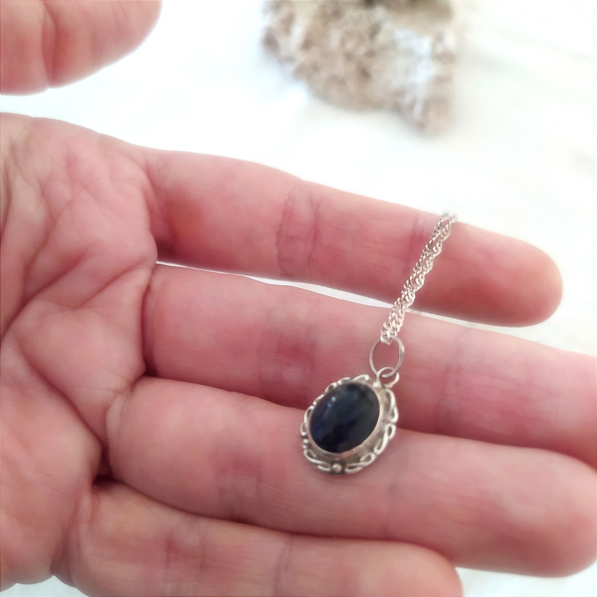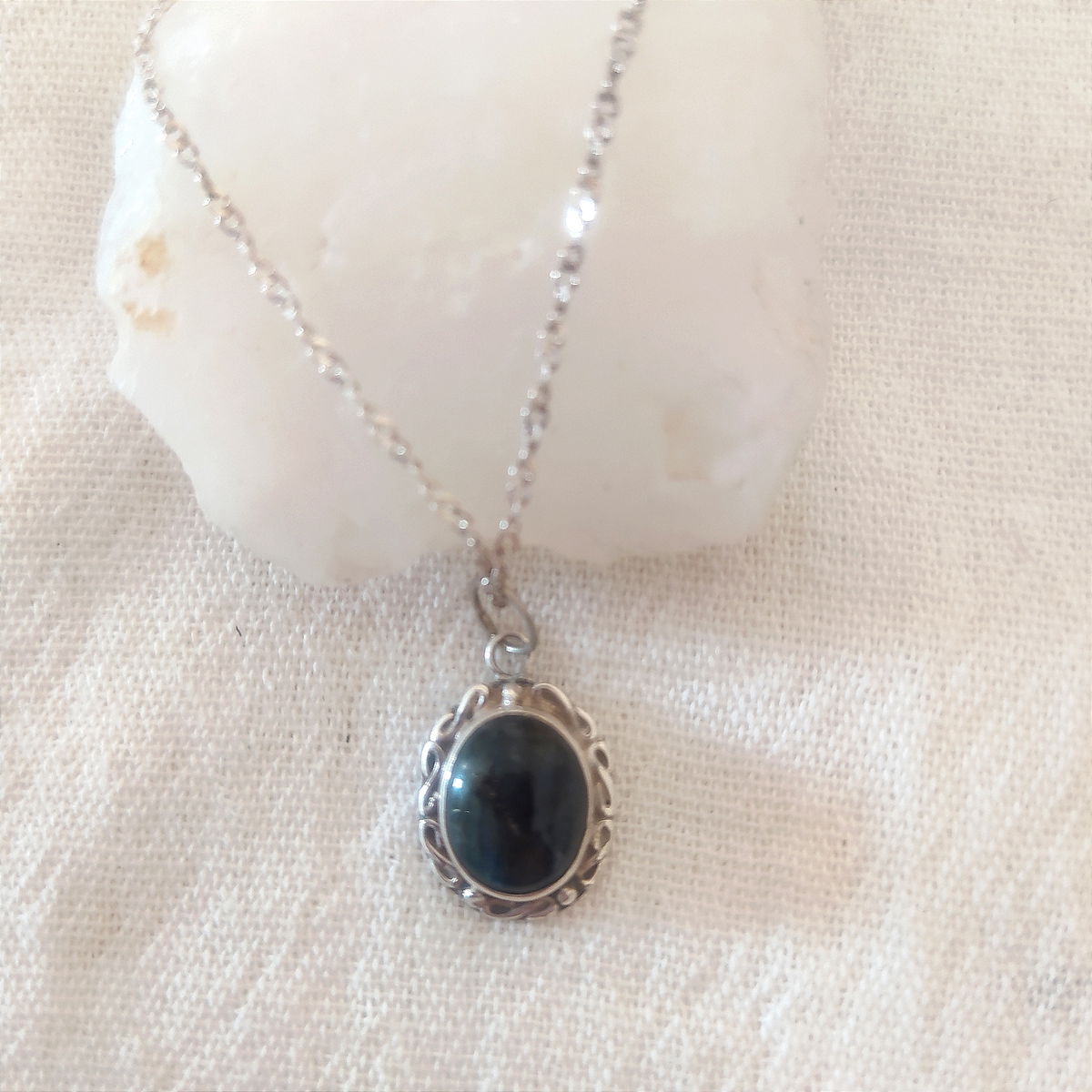 Dije de Ladradorita trabajado en plata 925.