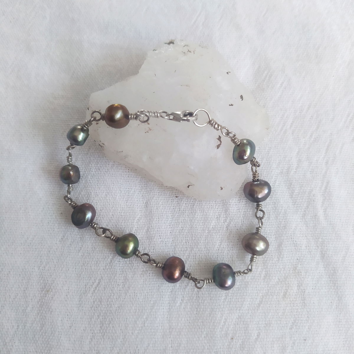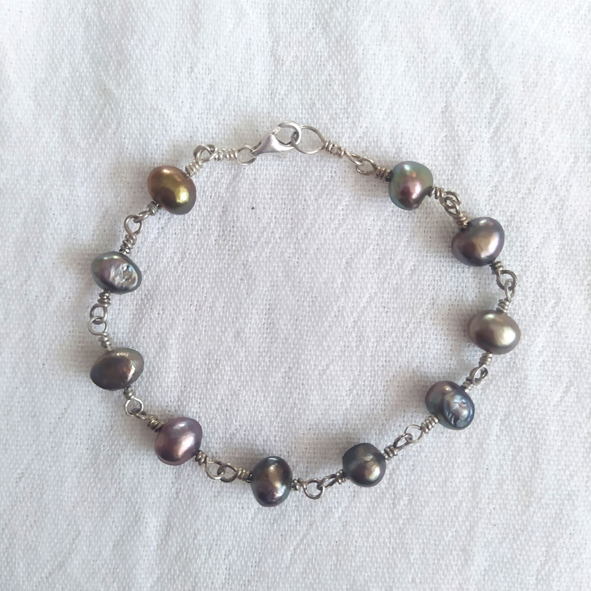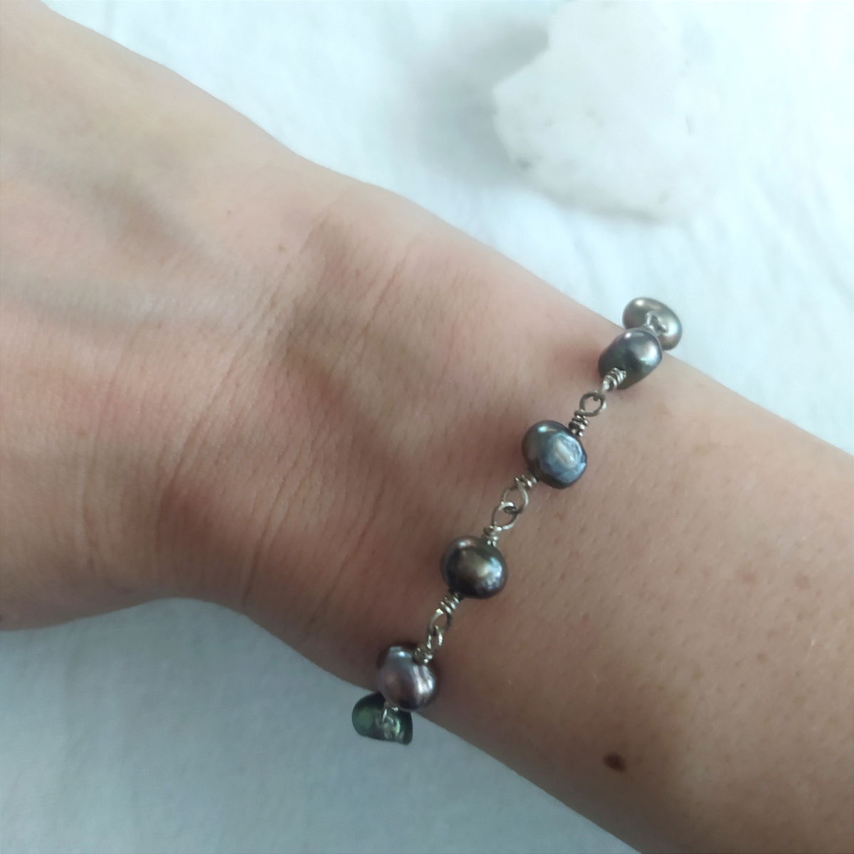 Pulsera plata 925 y perlas peltre verdosas