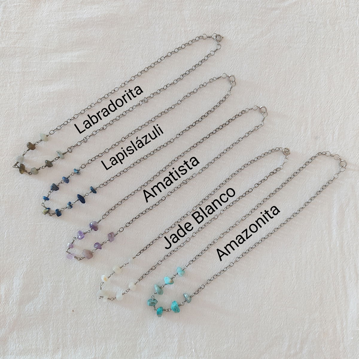 Collares crocker luna alpaca y piedras naturales