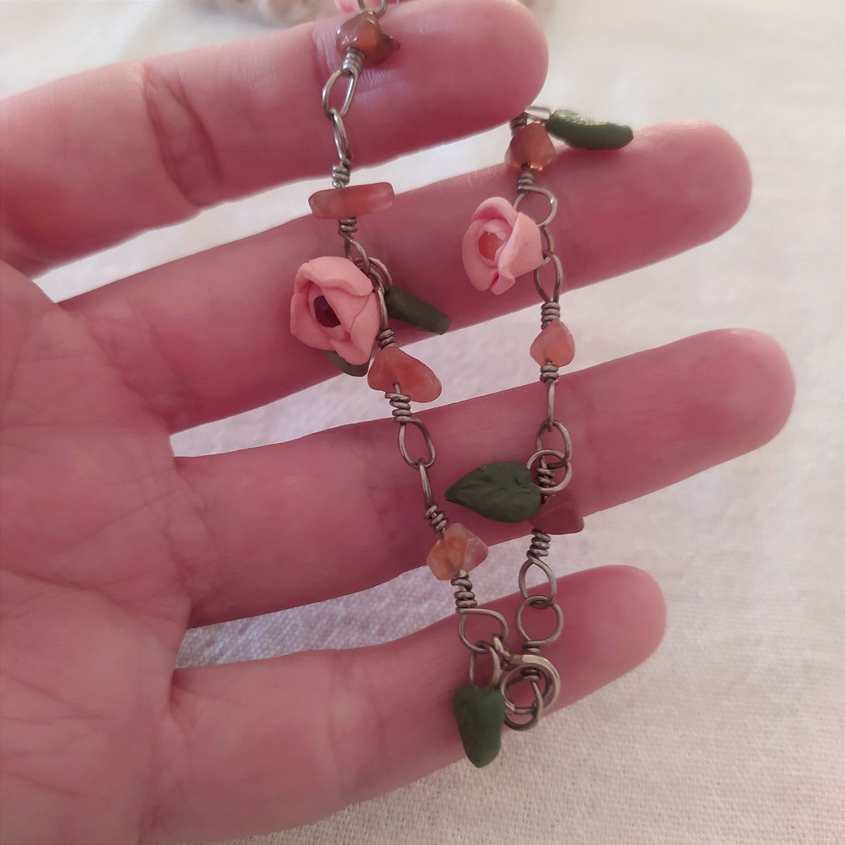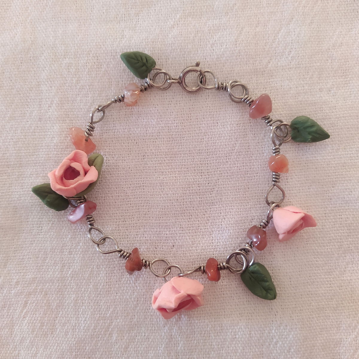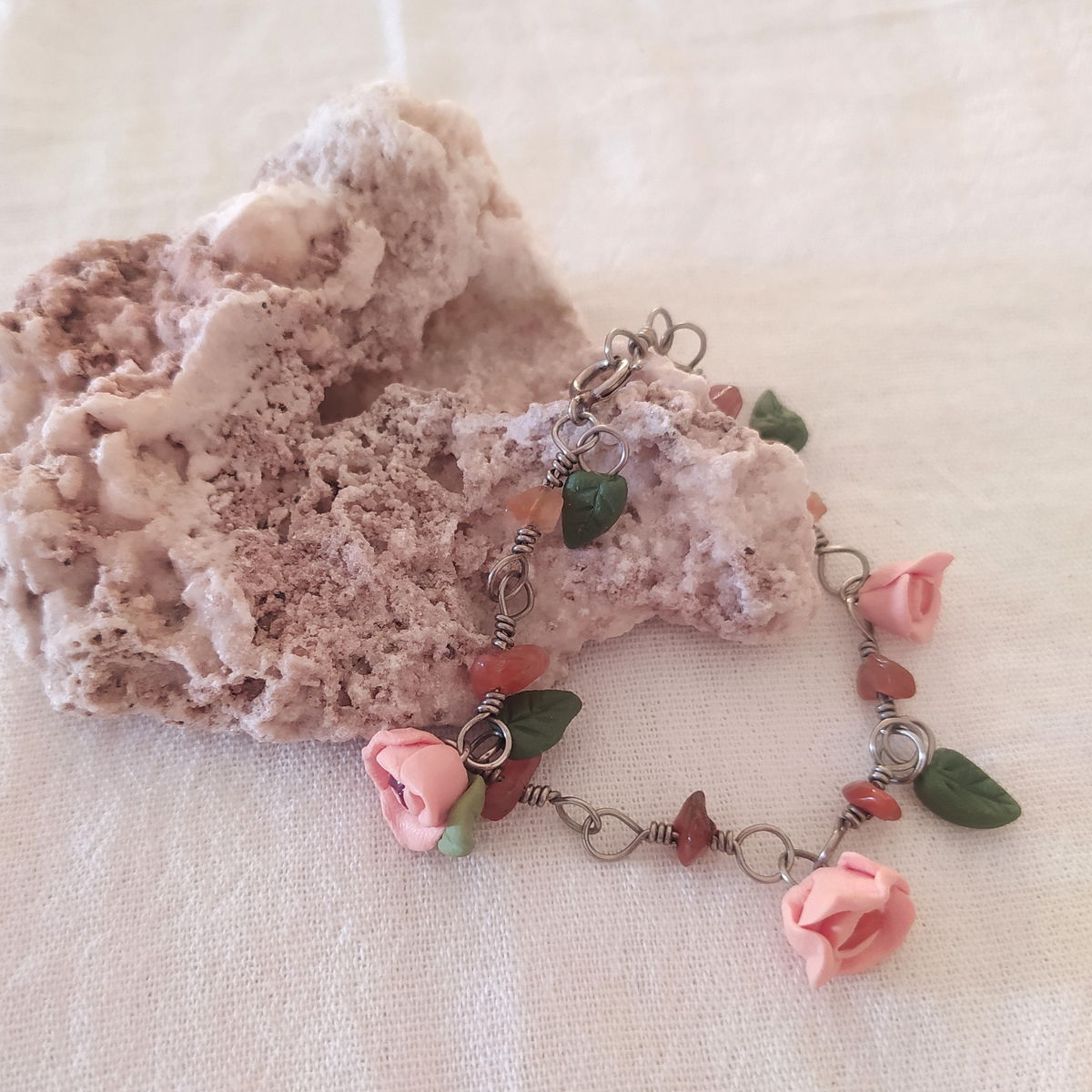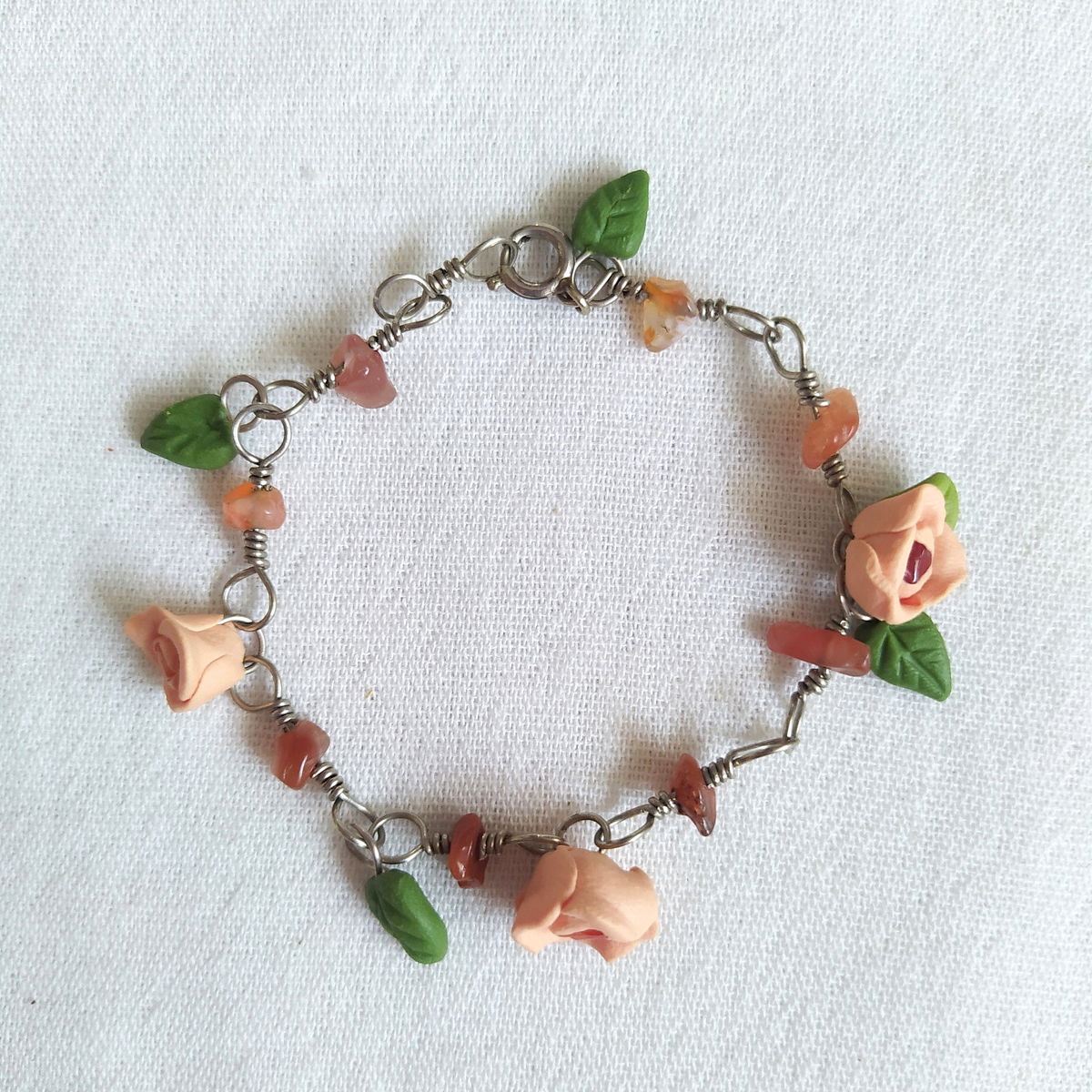 Pulsera de alpaca con cornalina y flores naranjas