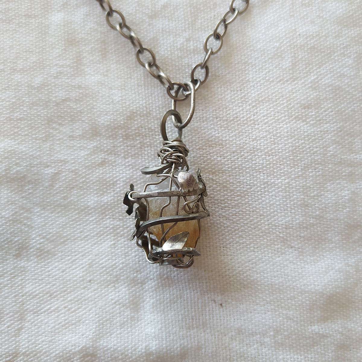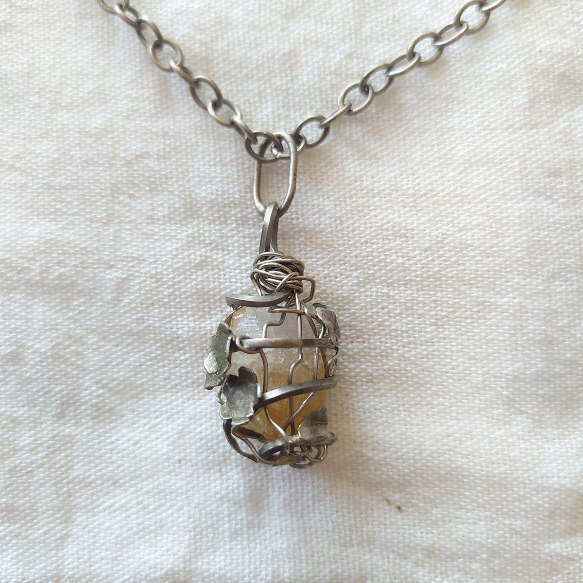 Dije de citrino encapsulado en enredadera de flores en alpaca.